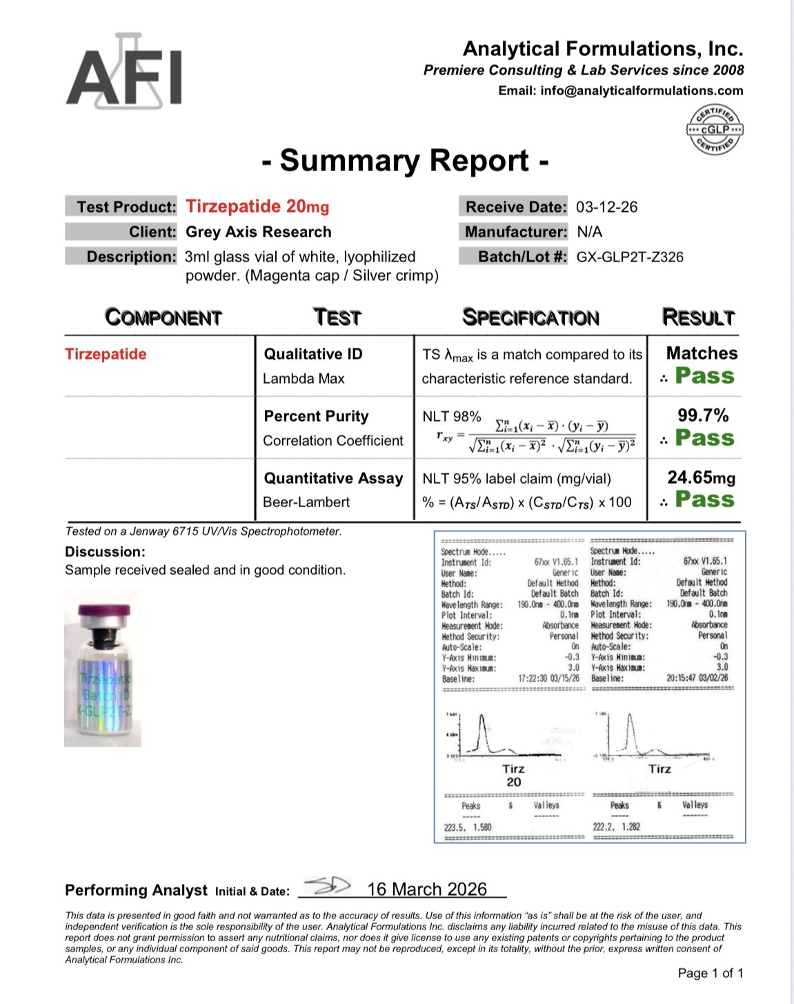The Certificate of Analysis (COA), where available, constitutes the primary and controlling product description. Website summaries are informational and do not supersede the COA.